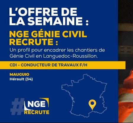 [#RECRUTEMENT] ? Annonce de la semaine : Notre agence de Mauguio (34) recherche un(e) Conducteur de travaux Génie Civil F/H en Languedoc-Roussillon. À l'aide de votre expérience sur plusieurs chantiers de Génie Civil et d'une formation ingénieur en Travaux Publics, vous assurerez la gestion financière, humaine et matérielle des chantiers jusqu'à leur livraison. Si l'aventure vous intéresse, vous pouvez nous le faire savoir ici ? https://preprod.nge.fr/nos-offres-demploi/conducteur-travaux-gc-h-f-2021-1484/ #NGE #BTP #emploi #ngerecrute #TravauxPublics #geniecivil #ingénieur #travaux