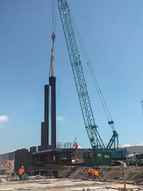 Dans le cadre des travaux d’ouvrages maritimes du quai Hermann du Pasquier sur le Port du Havre (HAROPA PORT) , les équipes NGE FONDATIONS effectuent la réalisation du rideau arrière de palplanches. Les palplanches de 20,950 m et 10,150 m sont mises en œuvre à l'aide d'un vibrateur hydraulique ICE815C et d'un marteau hydraulique IHCS30 afin de les ancrer dans les sables. Elles participent à l'aménagement du quai, qui devra assurer le transfert des colis lourds pour l’usine d’éoliennes offshore de Siemens Gamesa basée au Havre. NGE GENIE CIVIL / Guintoli / NGE FONDATIONS #travauxpublics #shipping #maritime #transitionécologique