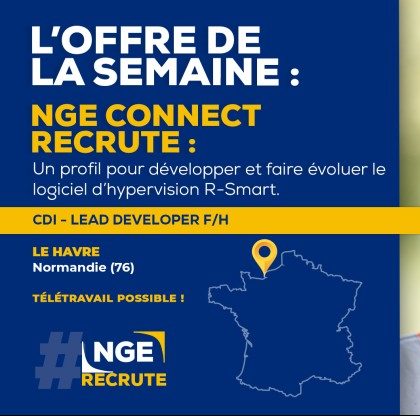 [#RECRUTEMENT]? Annonce de la semaine : NGE CONNECT recherche un(e) Lead Developer expérimenté(e) pour faire évoluer le produit R-Smart, logiciel d'hypervision déjà utilisé en production. Le poste étant ouvert au télétravail partiel, les profils non Havrais seront aussi étudiés. Vous aurez besoin d'un diplôme et d'une expérience solide en informatique, notamment dans la mise en place de solutions digitales. Vous serez amené(e) à encadrer une équipe de 5 à 8 développeurs. Compétences en management et travail en mode agile indispensable. Si le challenge vous intéresse, vous pouvez candidater juste ici ? https://preprod.nge.fr/nos-offres-demploi/lead-developer-experimente-team-leader-h-f-2021-1807/ NGE CONNECT contribue au futur des villes et des territoires en les accompagnant dans tous leurs projets Smart City : Wi-Fi, caméras de vidéo-surveillance, sanitaires, parkings, électrovannes, stationnement, éclairage public... Le tout géré par un logiciel d'Hypervision unique ! Si vous souhaitez construire les villes de demain, rejoignez-nous ! #BTP #emploi #NGErecrute #TravauxPublics #smartcity
