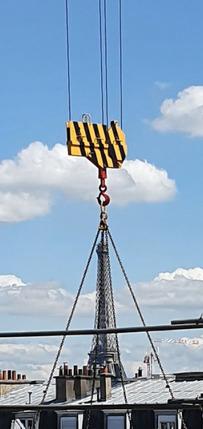 Avec des "si", on mettrait Paris en bouteille. Avec des grues, on transporte la Tour Eiffel. Merci à Pierre Mandon pour cette photo pleine d'imagination et de poésie ? Cardinal Edifice, le bâtiment de NGE - BTP ?️ Chantier de restructuration des ateliers #RATP Vaugirard, Paris 15e. #JeudiPhoto #photographie #Paris #chantier