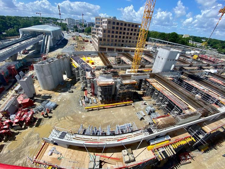 À Cesson-Sévigné, alors que le PH RDC du parking de la station de métro Via Silva se poursuit, les équipes de Cardinal Edifice et LAGARRIGUE se préparent à débuter le PH R+1. Cet ouvrage servira de parc-relai au terminus de la future ligne B de métro de Rennes (35). Félicitations à celles et ceux qui œuvrent sur ce beau chantier ? Morgane Suignard #parking #metro #Rennes #Bretagne #geniecivil