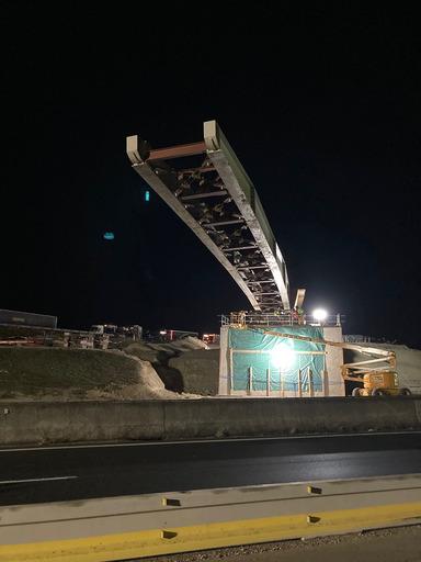 [#INSTANTCHANTIER] Bifurcation A10/A71 : succès des opérations de lançage de la charpente de l’ouvrage « saut-de-mouton ». Les opérations de lançage de la première moitié du caisson métallique du viaduc au-dessus de l’A10 se sont déroulées en toute sécurité, les nuits du 11 au 12 et du 15 au 16 mars. 20 compagnons du groupement ont travaillé sous fermeture des voies de circulation pour assurer la sécurité des usagers. Ce jalon important a consisté en la mise sur appui d’une partie du futur ouvrage qui enjambera l’A10 afin de fluidifier le trafic autoroutier aux abords d’Orléans. Depuis la culée jusqu’à la pile, une structure métallique de 310 tonnes a été poussée au fur et à mesure au-dessus des 6 voies de l’A10. Une étape phare sur ce projet qui occupe les équipes depuis mars 2020 et pour encore 20 mois. Guintoli - SIORAT - NGE GENIE CIVIL - AGILIS - EHTP - groupe NGE - Eiffage Route - MATIERE - VINCI Autoroutes - Cofiroute #NGE #BTP #travauxpublics #chantier #autoroute