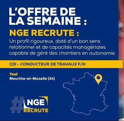 [#RECRUTEMENT] ? Annonce de la semaine : #NGE recrute un Conducteur de Travaux Canalisation VRD F/H à Toul (54) pour notre entité SLD TP. Pour ce poste, vous devez être capable d'assurer la gestion financière, humaine et matérielle des chantiers. De plus, il vous faudra veiller à la bonne exécution des travaux jusqu'à la livraison du/des chantier(s). Titulaire d'un diplôme BAC+5 ou d'une expérience d'au moins 4 ans sur un poste similaire, vous avez déjà géré des chantiers en autonomie et avez développé des compétences techniques dans les travaux publics. Vous pensez correspondre au profil ? Alors n'hésitez pas à postuler ici ? https://preprod.nge.fr/nos-offres-demploi/conducteur-de-travaux-canalisation-vrd-h-f-2022-3793/?cn-reloaded=1 #NGE #BTP #TravauxPublics #ConducteurTravaux #Recrutement #Emploi #NgeRecrute