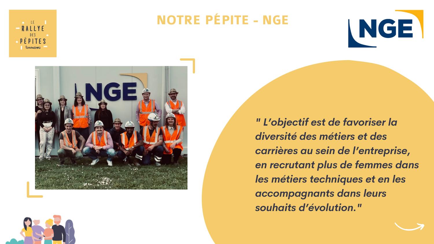 ?♀️ Retrouvez #NGE sur le RALLYE DES PEPITES à Limoges le 7 mai ! Le Rallye des Pépites, un jeu de piste ludique à travers les entreprises d'un territoire. L'objectif du Rallye est de casser les codes de l'entreprise et montrer la place de la femme en entreprise. Partez à la découverte de nos métiers, réalisez des défis et échangez avec des collaborateurs #NGE ! ?Chaque jour, NGE s'engage sur une démarche de progression avec une politique RSE visant à mettre l'humain au cœur des projets du groupe. #NGE #BTP #TravauxPublics #RSE #Engagement #Emploi #Métiers #Découverte