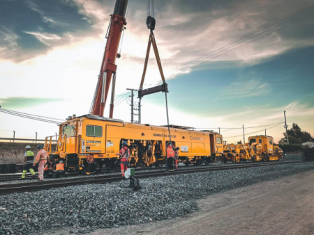 ?? - Pour le projet Ferrocarril Central, nous avons reçu une bourreuse fabriquée et arrivée tout droit d'Autriche ! Cette machine neuve a été achetée par le groupement Carmiere (Groupement Sacyr- NGE- Saceem - Berkès) pour la construction et la maintenance