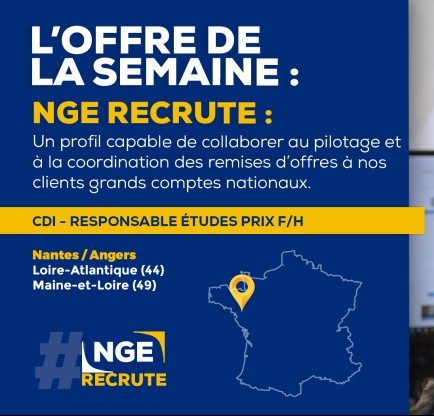 [#RECRUTEMENT] ? Annonce de la semaine : NGE - BTP recrute un Responsable Études de Prix F/H pour une prise de poste à Nantes (44) ou Angers (49). Vos missions principales seront d'analyser des pièces écrites, présenter des points clés, conseiller et orienter les décisions. Vous devrez également vérifier et valider les données du dossier de consultation des entreprises (DCE). #NGE #BTP #Recrutement #TravauxPublics #Nantes #Angers