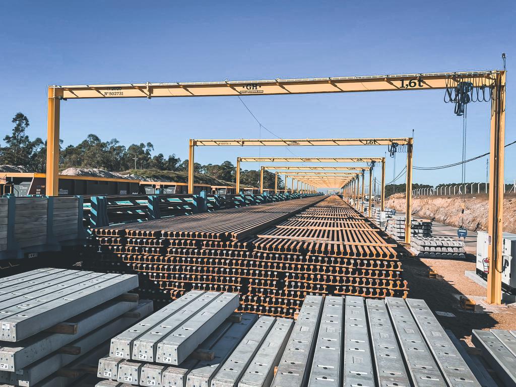 ??- Usine de soudage de rail LRS (longues rails soudées). ? 234m de longueur à partir de rails de 18m. Pour ce projet, nos équipes ont 37 000 rails de 18m à poser.