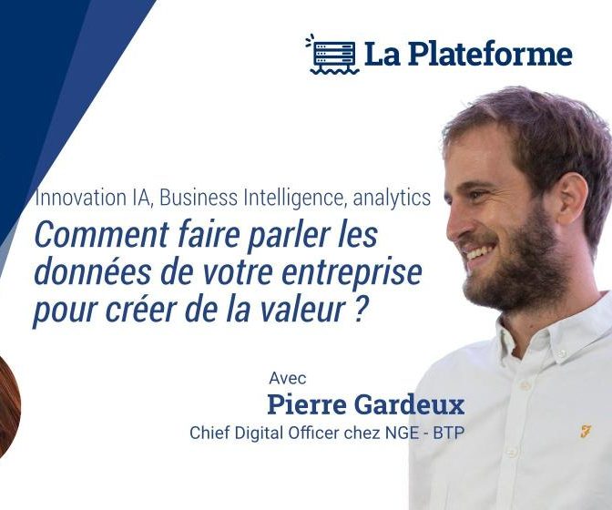 Pierre Gardeux, Directeur de la Stratégie Digitale, participe au webinaire de La Plateforme_ . L'occasion de partager, avec les futurs étudiants, un retour d'expérience sur tous les beaux projets réalisés avec les étudiants de l'école. ???? ? Le sujet du webinaire : "Comment faire parler les données de l'entreprise pour créer de la valeur ?"