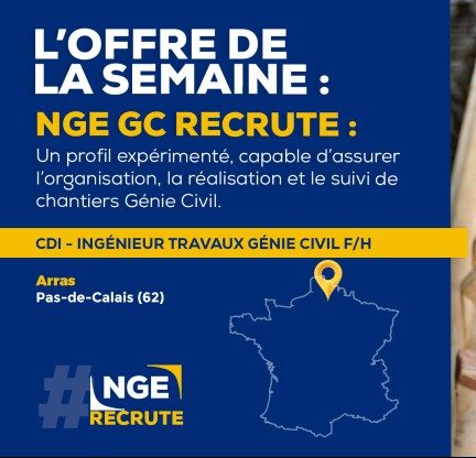 [#RECRUTEMENT] ?Annonce de la semaine : Notre filiale NGE GENIE CIVIL recherche un Ingénieur Travaux Génie Civil F/H pour une prise de poste à Arras dans le Pas-de-Calais(62). Vous aurez pour missions principales de coordonner la réalisation de travaux de construction ou de rénovation d’ouvrages d’art courants. Ce poste vous demande également d'être titulaire d'un diplôme d'ingénieur (ou équivalent) et de justifier d'une expérience de 3 à 5 ans sur un poste similaire dans le domaine du génie civil. Si le challenge vous intéresse, vous pouvez candidater juste ici ? https://preprod.nge.fr/nos-offres-demploi/ingenieur-travaux-genie-civil-h-f-2022-3192/ NGE GENIE CIVIL filiale de génie civil, intervient sur des chantiers techniquement complexes dont la technicité nécessite la mise en synergie de nombreuses compétences : infrastructures de transport (ouvrages d’art routiers et ferroviaires), industrielles (stations d’épuration, réservoirs d’eau, usines hydrauliques…) et fonctionnelles. #NGE #BTP #TravauxPublics #ngerecrute #emploi #GénieCivil #PasDeCalais