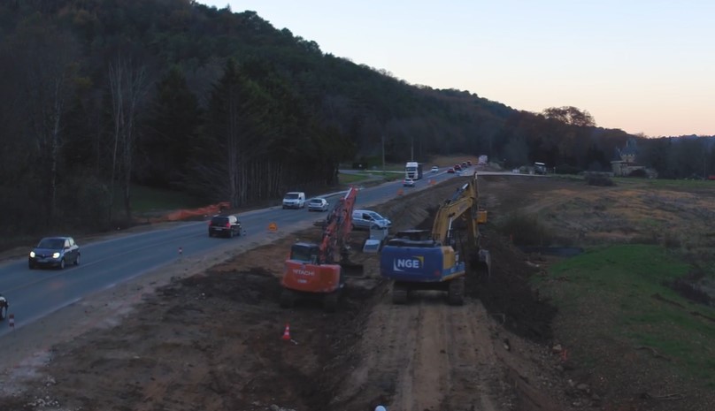 En #vidéo : Une nuit ? sur la RN221 à Boulazac en Dordogne. Depuis 4 mois, nos équipes travaillent nuit et jour afin de remettre aux normes l'ouvrage existant. Elles réalisent 7800 m3 de déblais mis en remblais, 4000 ml de poutres de rives, 1 prolongation d'ouvrage hydraulique sur un cours d'eau. #NGE #BTP #TravauxPublics #Terrassement #Dordogne