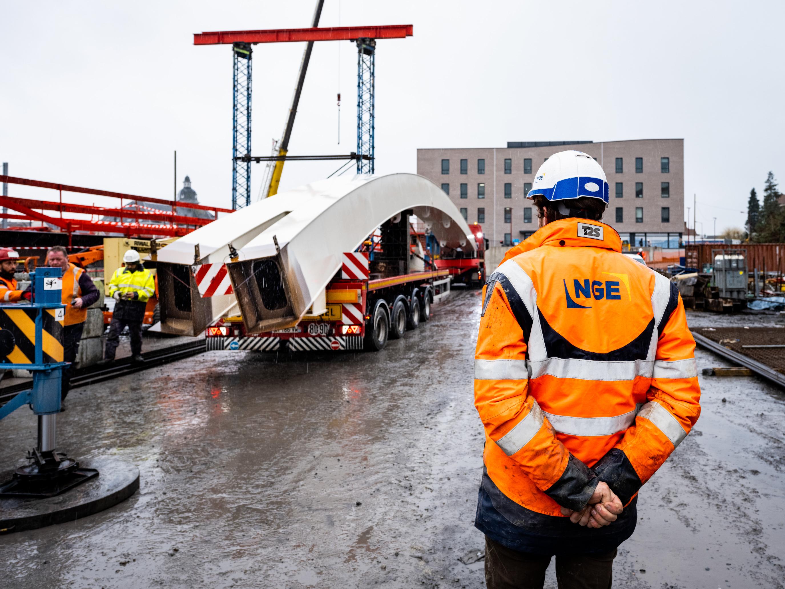 ⚠️ Ça bouge du côté d'Hazebrouck (59) ! Les éléments de la future passerelle arrivent petit à petit sur les lieux par convoi exceptionnel. Cette charpente métallique, fabriquée et assemblée par le groupement BERTHOLD BTP et BMCN, remplacera la passerelle préalablement déconstruite. Les équipes #NGE ont terminé les deux appuis en béton matricés prévues pour accueillir cette charpente métallique. Ces appuis, mesurant 6 mètres de haut, représentent un peu moins de 400m3 de béton ! En attendant la pose de la passerelle, qui se déroulera début mai, les équipes s'occuperont de mettre en accessibilité PMR le troisième quai de la gare. Des travaux qui seront réalisés avec OFFROY dans les prochains mois. Photos : Marc Chesneau #NGE #BTP #TravauxPublic #Passerelle #Nord