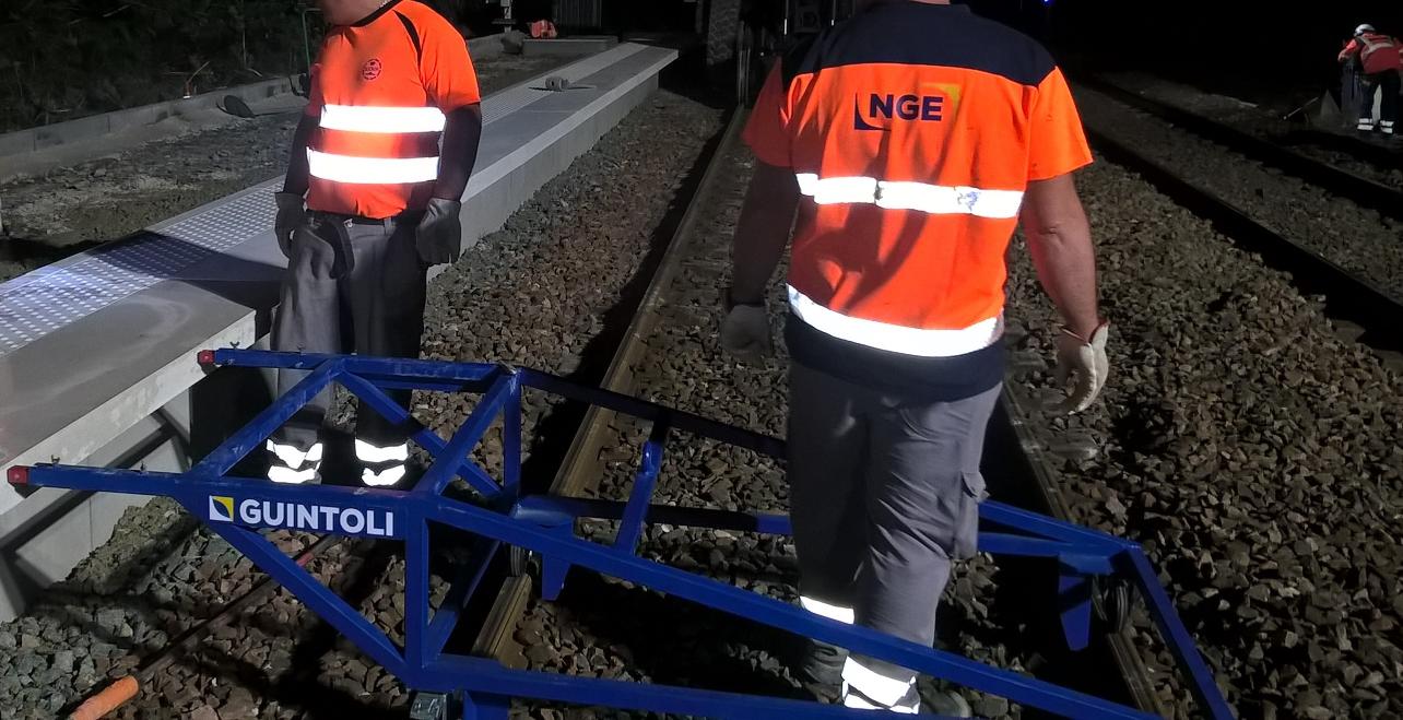 ? Des quais réglés au millimètre, et sans mal de dos ! Chez NGE, nous sommes convaincus que les innovations viennent directement du terrain, au sein de nos équipes de travail. C’est le cas de Cyril BODIN et Yoann DA CUNHA, Chefs de Chantiers qui ont développé un gabarit de chariot permettant de régler les plateformes des quais à la bonne distance par rapport au rail. Afin de pouvoir mieux accompagner ses collaborateurs, NGE s’engage pour l’amélioration des conditions de travail sur ses chantiers ✨. « Avant, le réglage du béton se faisait au laser et tiré à la règle. Maintenant, le chariot est plus efficace [...] Le fait que l’on puisse le déplacer en roulant sur les rails enlève la pénibilité du port répété du gabarit et ainsi de la fatigue pour les compagnons ». ? Cyril BODIN, Chef de Chantier GUINTOLI.