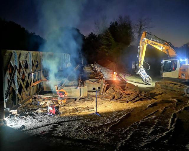 Démantèlement des ponts ferroviaires en cours à Saint Florentin (Yonne) ! Cela fait 2 semaines que les équipes Guintoli travaillent sur le démantèlement par mitraillage de 2 ouvrages ferroviaires. En groupement avec NGE GENIE CIVIL, les équipes s'activent pour le compte de la SNCF. Au programme : ? Découpe oxyacétylénique, une technique de découpe au chalumeau, et découpe à l'arc électrique ! ✂️ Démantèlement mécanisé avec cisaille Le chantier a débuter le 2 novembre et prendra fin la semaine prochaine ! Félicitations aux équipes pour ce travail ! Photo : Brieuc Morguen #NGE #BTP #travauxpublics #ferroviaire #Yonne