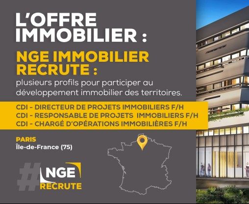 [#RECRUTEMENT] ? Annonce de la semaine : Plusieurs offres d'emplois sont à pourvoir cette semaine dans le secteur du développement immobilier ! Rejoignez NGE IMMOBILIER et proposez aux territoires des projets sur-mesure et résolument engagés pour la transition écologique.