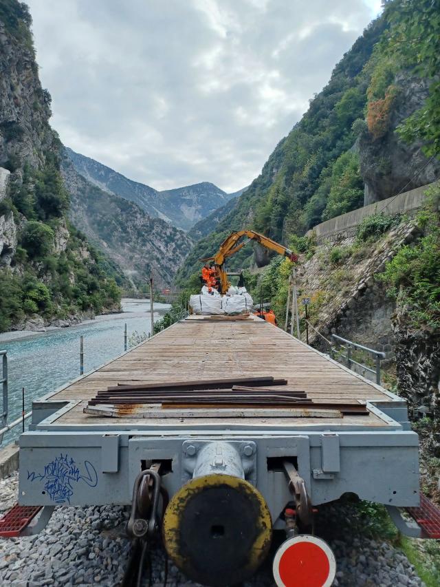 Fin du chantier de réfection des passerelles piétonnes des chemins de fers de Provence, à Malaussène (06) ! En 3 semaines, les équipes ont déposé la passerelle existante, démoli le muret en place, et mis en place le nouveau muret ainsi qu'une nouvelle passerelle avec garde-corps.