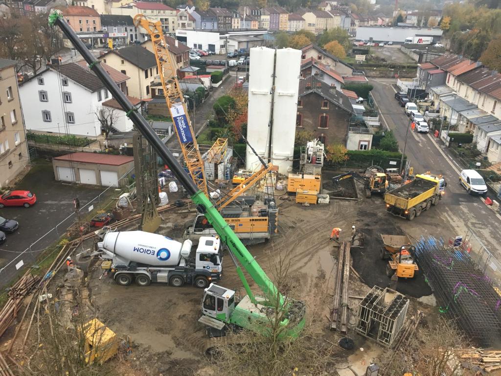Création d'un bassin de pollution envisagé depuis 2013 ! A Villerupt (54), les équipes NGE FONDATIONS s'affairent à réaliser les parois moulées du futur bassin de pollution, allant à 12 mètres de profondeur.